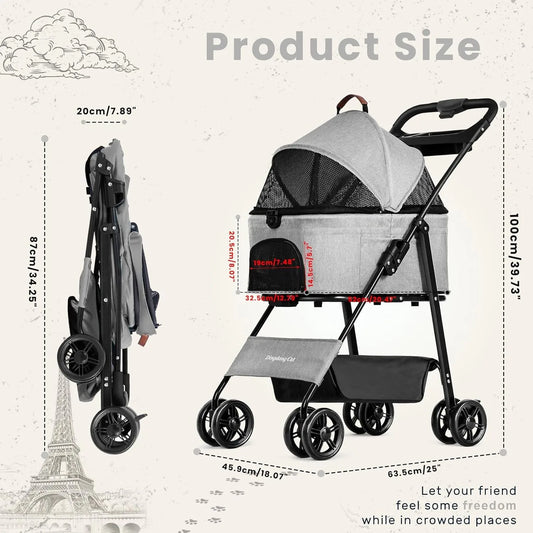 Small Pet Folding Dog Stroller – Lightweight 4-Wheel Cat & Dog Carrier